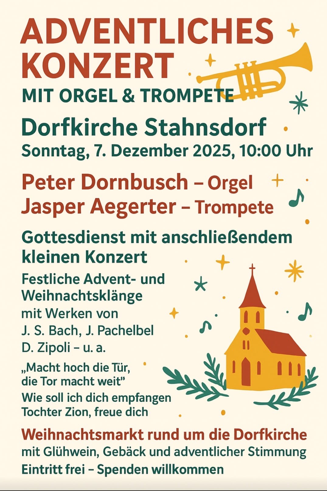 Adventliches Konzert mit Orgel und Trompete am 07.12.2025: hier klicken